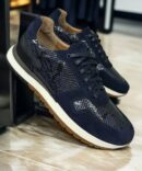 Чоловічі кросівки виконані з натурального пітону та італійської замші. Колір пітона – синій. Колір замші – темно-синій.