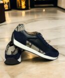 Чоловічі кросівки у темно-синьому кольорі, добре поєднуються з casual стилем. Зроблені вручну з преміальної італийської замші у поєднанні зі шкірою пітона. Спеціально підібрана підошва зі скошеною п’яткою, що додає зручності при керуванні авто. Взуття від Anton Kuzmin для переможців та справжніх лідерів свого життя. Авторський дизайн наших майстрів.